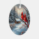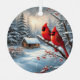 The design features two red cardinals on a winter day. Cardinals are beloved birds for their beauty and bold colours. They are often associated with positive emotions and spiritual symbolism. According to Birds and Blooms, cardinals are considered to be a sign of hope, joy, and love. According to some spiritual beliefs, seeing two red cardinals together is a symbol of love, friendship, and relationship. It is believed that the universe uses these birds to convey messages about our relationships with others. The backside of the ornament is ready for your personalization.