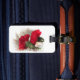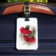 Easily customize the reverse side of this luggage tag which features an image of two brilliant red carnations set on a pearly white brocade fabric background. Make your baggage stand out on an airport carousel!