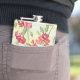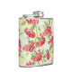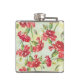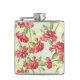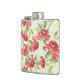 Red Carnations on green with butterflies Hip Flask