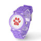 Cat or pet lover modern styling in this watch with a red cat paw and her monogram inside. Black tick marks to help for telling time.