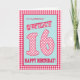 A Sweet 16th Birthday Card for a Girlfriend, with a pretty, retro feel. The letters, numbers and border are in red and white check gingham and polka dots on a sky blue background. You can change the inside message if you wish.