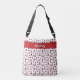 Red Cheer Hearts, Pom Poms, Megaphone Pattern Crossbody Bag