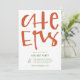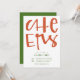 This flat invitation card features a fun, hand lettered 'cheers' set against a customizable background colour. Example shown for holiday party, but the red 'cheers' works great for any number of fun, party invitations! Just enter your info, click customize, and change the background colours on the font and back to your choosing!