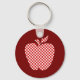 Great teacher's key chain, with graphic artwork of a red and white chequered apple, against a red background. Perfect little gift for that special teacher.