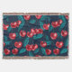 Red cherries on dark blue throw blanket