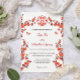 Red cherry blossom branches and two butterflies on a white background. Chinese wedding invitation with a red double happiness symbol.