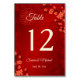 This Chinese wedding table number cards features beautiful red cherry blossoms and a red double happiness symbol on a shimmering ruby red background.