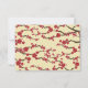 An original illustration of beautiful red cherry blossoms or sakura spring flowers with dark brown branches on a light yellow cream background. This is a modern wedding dinner/lunch reception card.