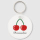 Red cherry keychain with personalized name. Cute fruity cherries design. Add your own name.