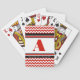 Custom Bicycle brand playing cards, personalized with your initial and text. This deck of cards is design with a red & white zigzag chevron pattern, with red, black, and white, lines. "Own" the game at your next gathering, or give as a gift at any occasion.