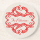 Elegant and sophisticated Chic Damask Coaster featuring a soft beige background and a stylish damask flourish embellishment in dark red. This modern design is easy to customize with your own text. Click "Customize It" to find more personalization options.
