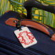 Elegant and sophisticated Chic Damask Luggage Tag featuring a soft beige background and a stylish damask flourish embellishment in dark red. This modern design is easy to customize with your own text. Click "Customize It" to find more personalization options.