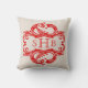 Red Chic Damask Monogram Pillow