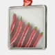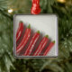 High angle view of five red chili peppers in a plate. Copyright: Glowimages