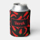 Fun, colourful can coolers with spicy red chilli peppers on a black background. Add your name or other text into the text box. Great gift idea for chefs and spicy food lovers.