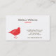 Clean and modern business card design with a single red bird silhouette in the corner. Type is set in dark brown & red on a white card. Back of card features a vintage pattern in brown to correspond with the front. © 1201AM DESIGNS