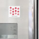 A magnet with red and white Christmas balls and a 'Merry Christmas' text. Customize the magnet with your own text, background colour among other options.