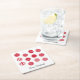 A paper coaster with red and white Christmas balls and a 'Merry Christmas' text. Customize the paper coaster with your own text, background colour among other options.