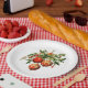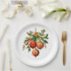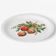 Paper plates with a vintage style illustration. 3 red Christmas baubles surrounded by green holly and berries. Stylish retro design.