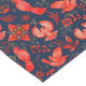 Decorated red Christmas birds and flowers pattern on a dark blue background.