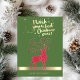 Elegant red Christmas reindeer, and retro Christmas balls on the green background make this a perfect Christmas or holiday greeting card for friends and family.