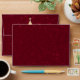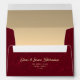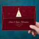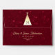 Simple, elegant, modern red glitter 5x7 envelope for winter holidays greeting cards and invitations with gold foil inside, return address and Christmas tree monogram at the top flap.