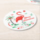 Red Christmas Flamingo Merry Christmas round Paper Coaster