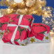 Red Christmas flower, gold stars on abstract silver on wrapping paper .