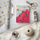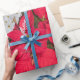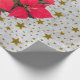 Red Christmas flower gold stars on abstract silver Wrapping Paper