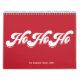Red Christmas Ho Ho Ho wall calendar with white changeable text on cover page and changeable photos for every month of the year.