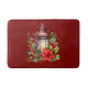 Red Christmas Lantern Poinsettia and Pine Bath Mat