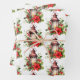 Red Christmas Lantern Poinsettia and Pine Pattern Wrapping Paper Sheet
