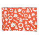 A red and white Christmas pattern with bells, Christmas trees, holly and berries, and festive wreaths.
