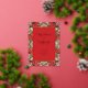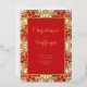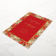 This design was inspired by photos of fresh flowers. Festive poinsettias wrap around your invitation with gold outlines. What looks like stained glass is a wonderful frame for your Christmas event!