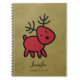 A personalized notebook with a red Christmas reindeer illustration. Festive and cute. The background is a digital image of brown kraft paper, not actual kraft paper.