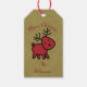 Gift tags with a red Christmas reindeer illustration. Festive and cute. Kraft paper background.