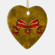 Red Christmas Ribbon on Gold Ceramic Ornament