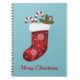 Red Christmas Stocking On Blue With Custom Text Notebook