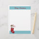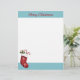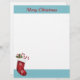 Destei's original illustration of a festive red Christmas stocking that has two candy canes coming out of it. The top and bottom have blue colour borders. There is also a personalizable text area that now reads: "Merry Christmas".