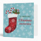 Destei's original illustration of a festive red Christmas stocking that has two candy canes coming out of it. The background colour is blue. There are also personalizable text areas on the front and on the spine.