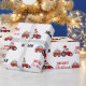 A cute illustration of a red Christmas tractor truck wearing a Santa hat and decorated in Christmas lights towing a wagon filled with Christmas gifts. Perfect for boys and girls who love tractors, trucks, heavy machinery, farming or just love playing with toy trucks. An ideal Christmas wrapping paper for tractor truck enthusiasts big or small, girls or boys. Customize the name and make it your own.