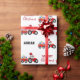 Red Christmas Tractor Truck Farm Custom Name Wrapping Paper