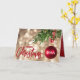 A beautiful red Christmas tree ornament against gold blurred lights features a greeting on the front, your favourite photo and your personalization and names on the inside. MORE styles and designs in our store.
