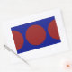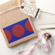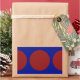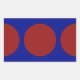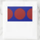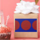This bold geometric pattern features a red circle in the centre and two red half circles on the edges of a blue background.
