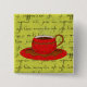 Red Coffee Cup Art on Lime Green Script Words 2 Inch Square Button