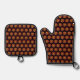 Safely handle baking trays, cookie sheets and muffin tins from the oven with this pot holder set with black trim that features the photo image of a red Collarette Dahlia flower on a black background and printed in a repeating pattern. A lovely, floral design! Select from square pot holder style or oven mitt style, or order a set of both. Image printed on one side only.