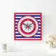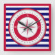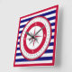 Red Compass Rose Blue and White Stripe Square Wall Clock