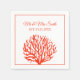 Red coral reef elegant beach wedding party Napkins with name of bride and groom. Beautiful paper napkin design for cocktail hour or receptions. Customizable colours. Stylish border with fancy script text template. Perfect for nautical or beach theme weddings and more.