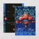 RED CORAL ROSES,BLUE BLACK DAMASK MONOGRAM RSVP CARD
