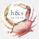 Finish your summer wedding invitations or favours with these chic coastal style stickers, featuring your initials or monogram and wedding date nestled alongside a vintage style nautical crab illustration in red watercolor.